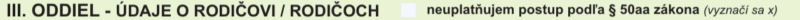 Ak ho označíte, strácate možnosť poukázať 2 % – či už rodičom, alebo neziskovej organizácii. Pre darovanie 2 % ho teda nechávajte prázdne.
